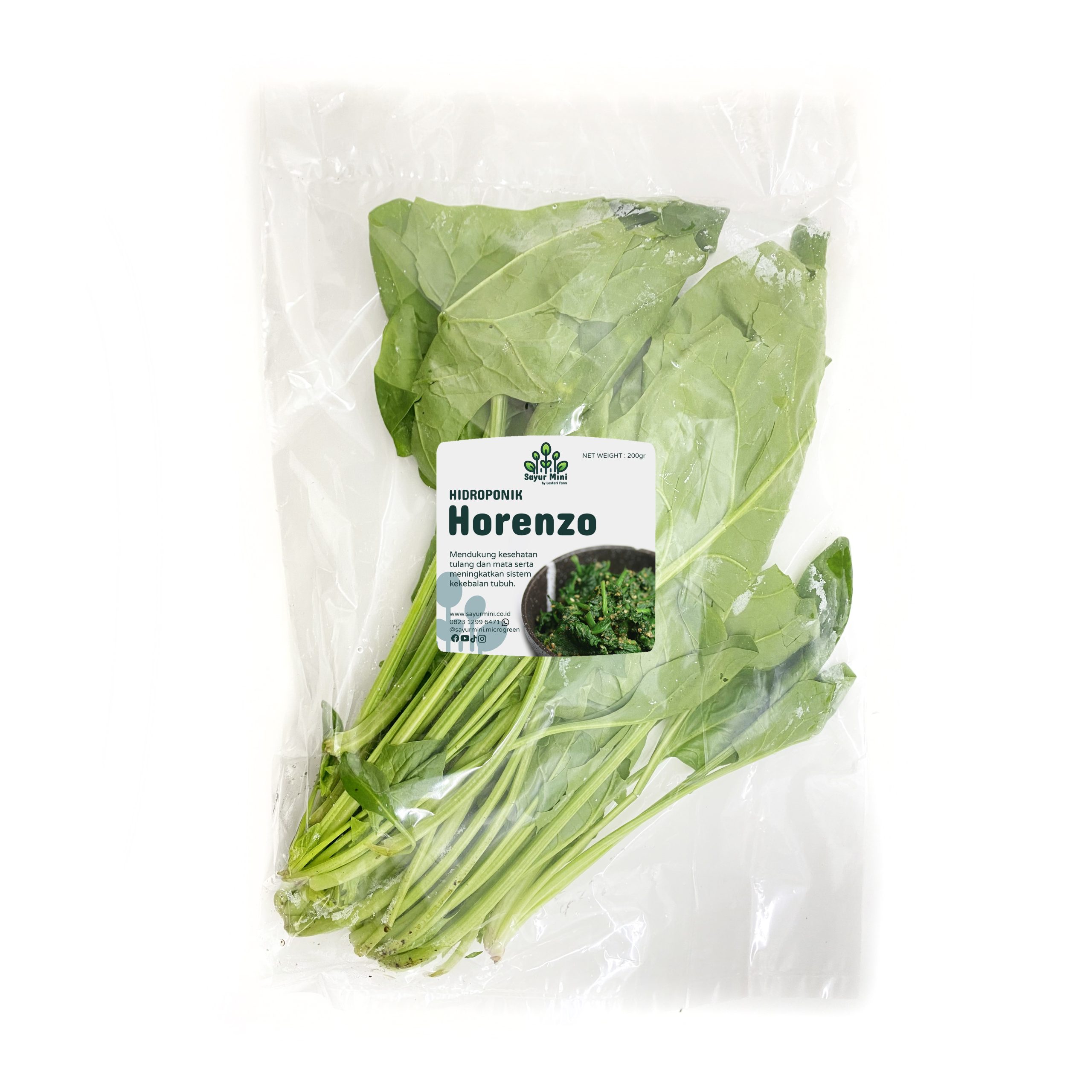 Horenzo merupakan salah satu jenis sayuran yang lebih dikenal dengan sebutan bayam jepang. Daunnya lebat dengan batang kecil lurus. Horenzo biasa dinikmati sebagai tumisan seperti bayam atau kangkung. Terdapat potensi kelebihan/kekurangan gramasi +-10% per pack